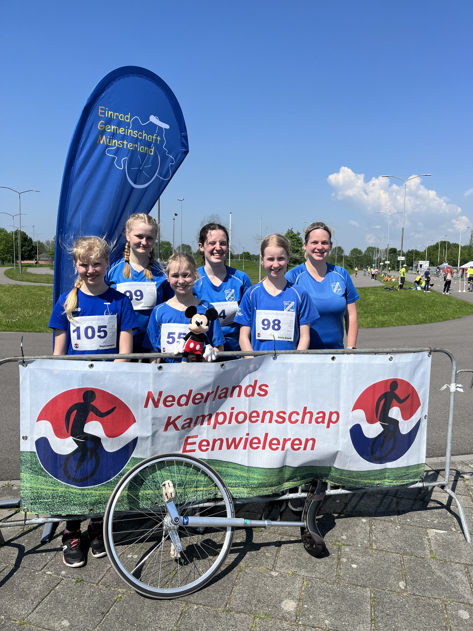 Gruppenbild: Die Einradgemeinschaft bei den Niederländischen Meisterschaften