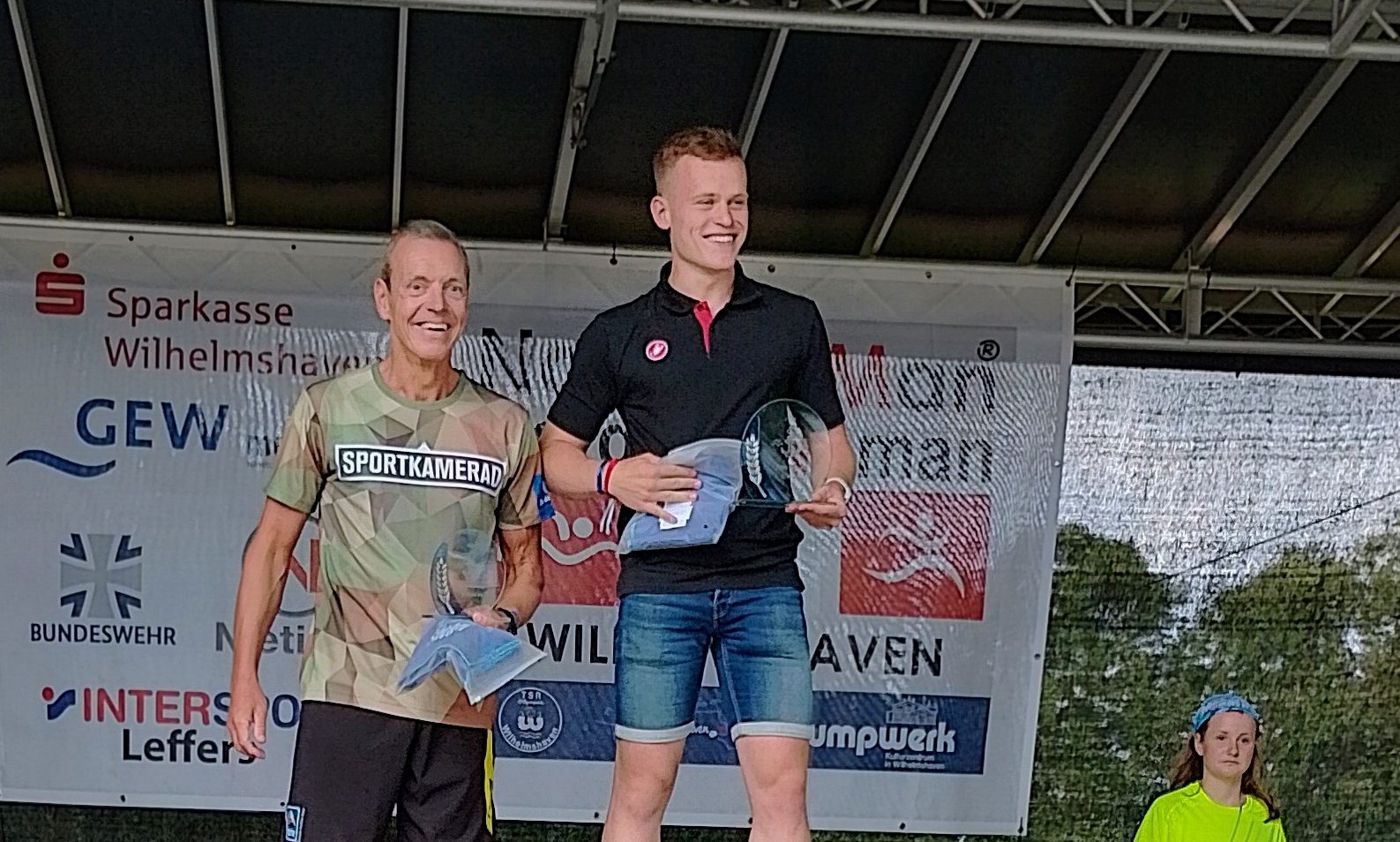 Gruppenbild Siegertreppchen Nordseeman Triathlon